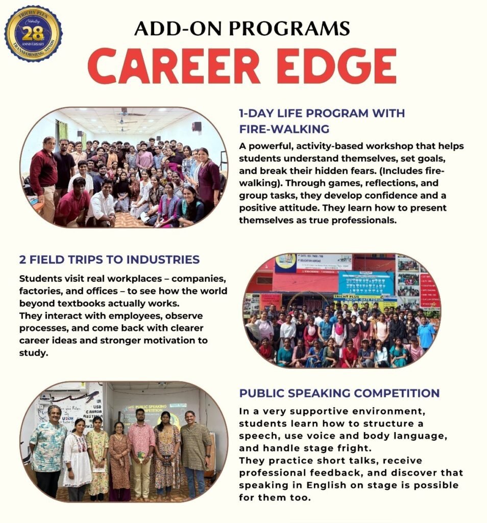 TRICHY PLUS stands out with over 26 years of expertise, a proven track record of top CLAT results, and a team of seasoned instructors. Our state-of-the-art infrastructure, premium study materials, and value-added services like field trips and personality development classes set us apart.