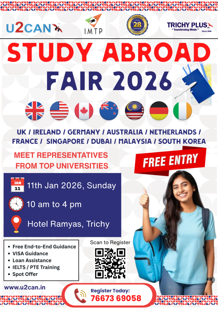 One of the best consultancies for your Study Abroad dream. The team guides and helps in shortlisting the Universities based on your requirements. I had a very smooth processing experience with U2CAN - TRICHY PLUS.