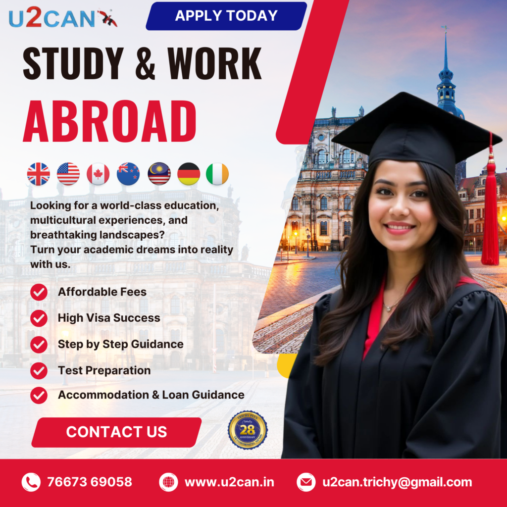 Thanks to U2CAN - TRICHY PLUS for all their support. In my view, the consultancy was very friendly and kind. They helped me to apply for the Universities and shortlisting the Courses.The overall experience was very good.
